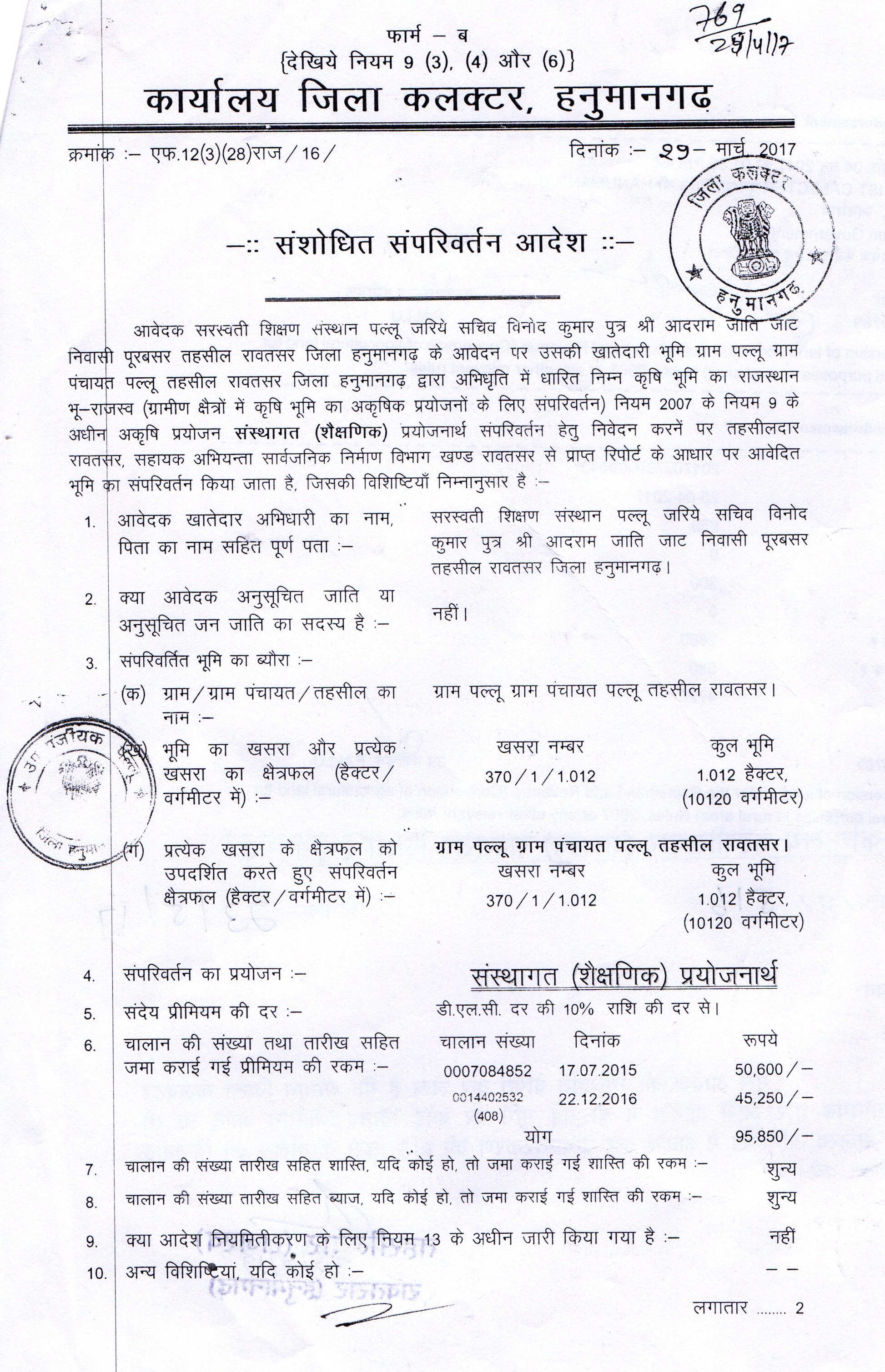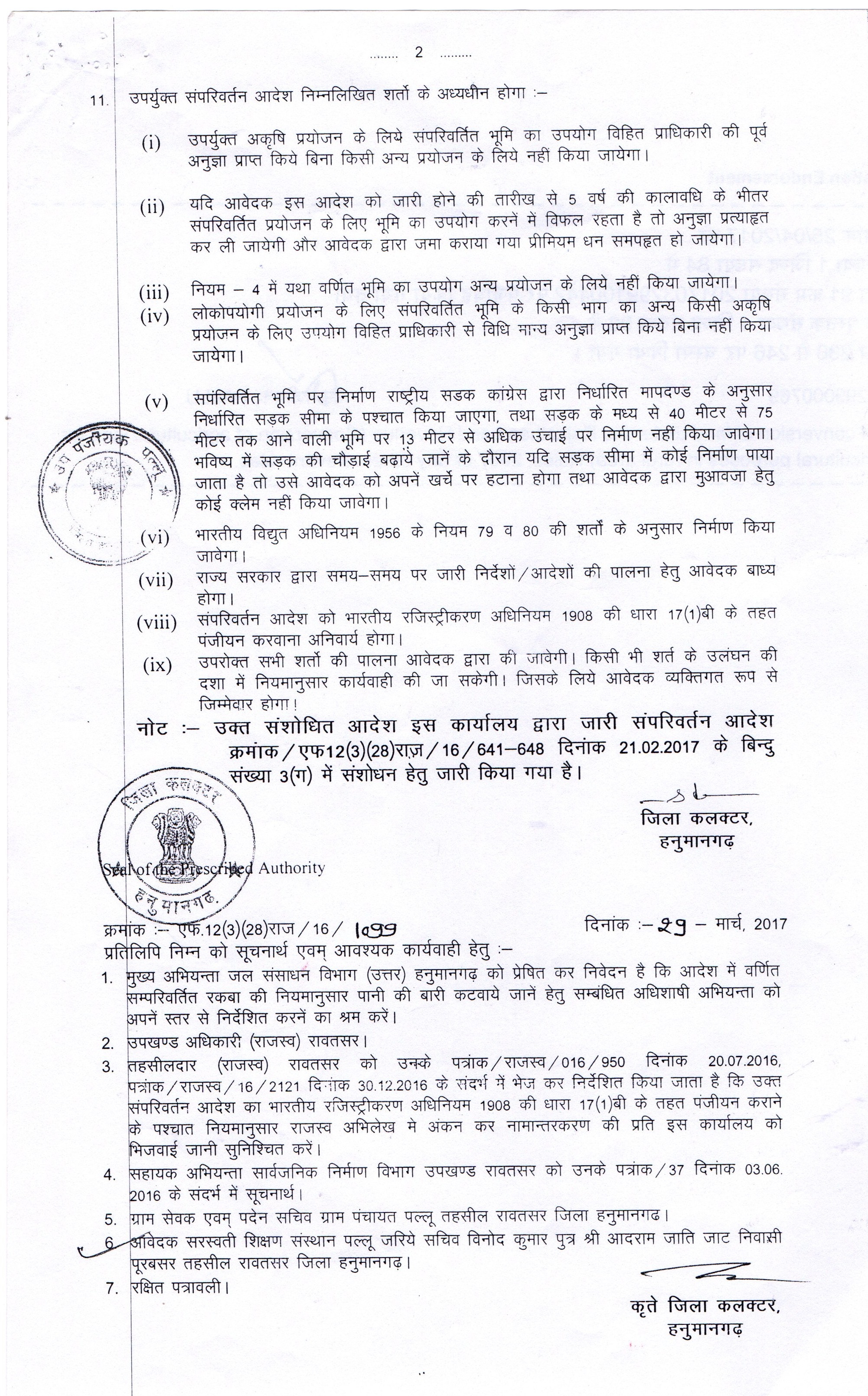 | Land Conversion:- | |||